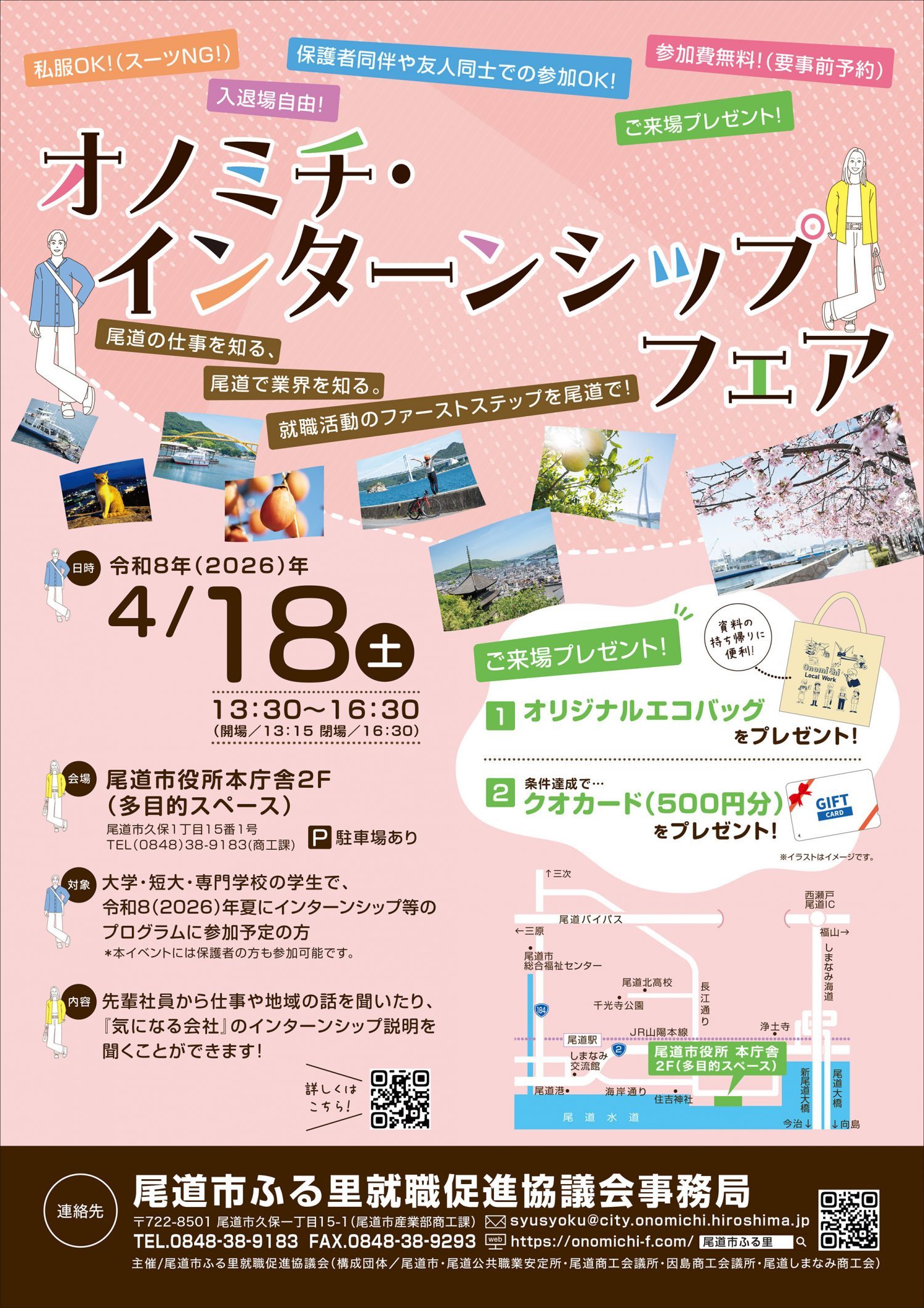 令和8年4/18(土)【オノミチ・インターンシップフェア】 開催します